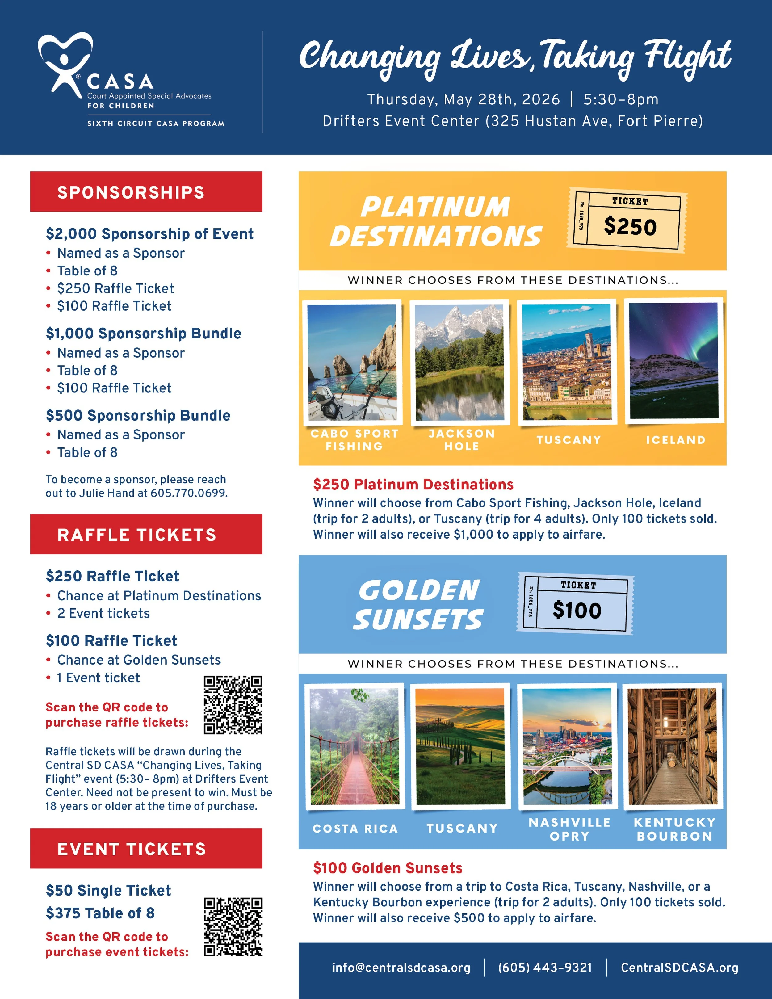 Hosted in support of Central South Dakota CASA (Court Appointed Special Advocates), this event helps ensure that children in the court system have a voice and a dedicated advocate by their side. Every ticket purchased, every bid placed, and every raffle entry fuels life-changing support for children who need it most.